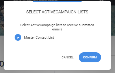 - Click on the ActiveCampaign Settings button and select a list you’d like to send the data to