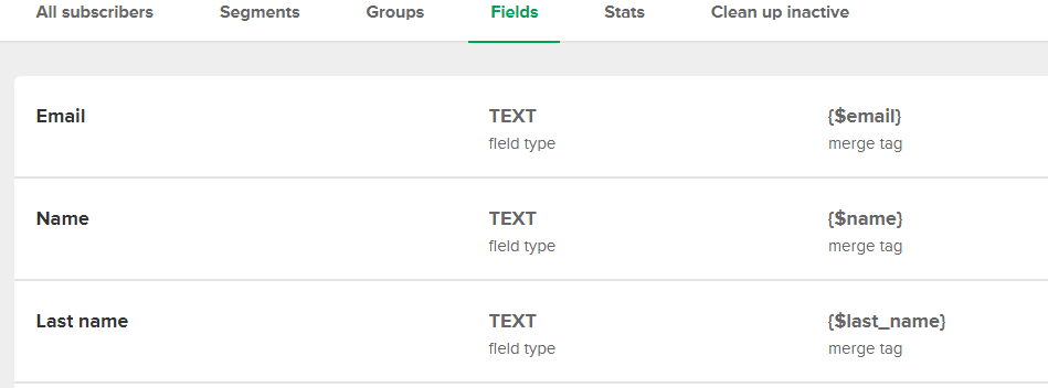 Note that the required fields in MailerLite's must be added and the fields will always be sent as type TEXT.