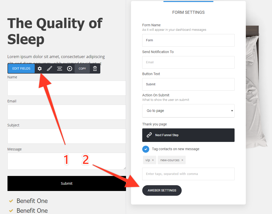 That's it! Whenever a visitor leaves their email on your website or funnel, they'll be sent to your lists in AWeber.