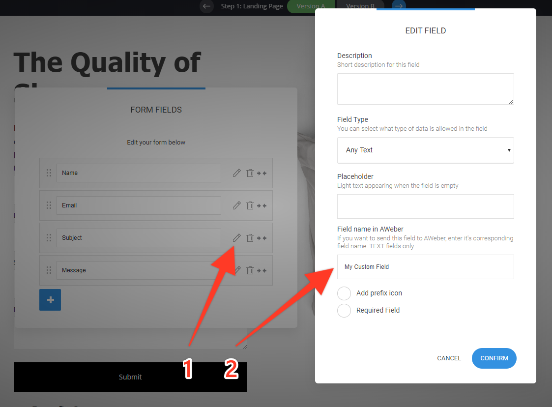 If you want to link a specific field to a custom field in AWeber, simply pass the AWeber custom field name in the field settings when editing your fields: