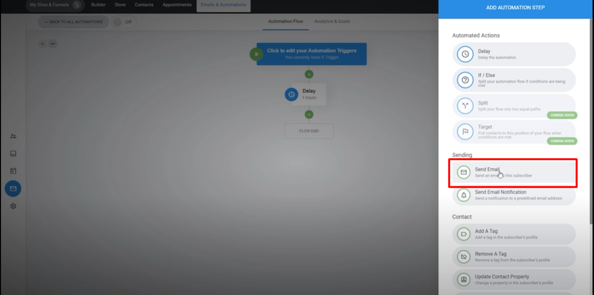 7. For example, select the "Send Email" action and provide a name for the email, like "Welcome."