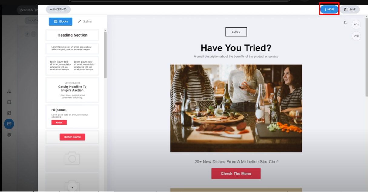 9. Click on the button to design the email. You can choose from pre-designed templates or start from scratch.