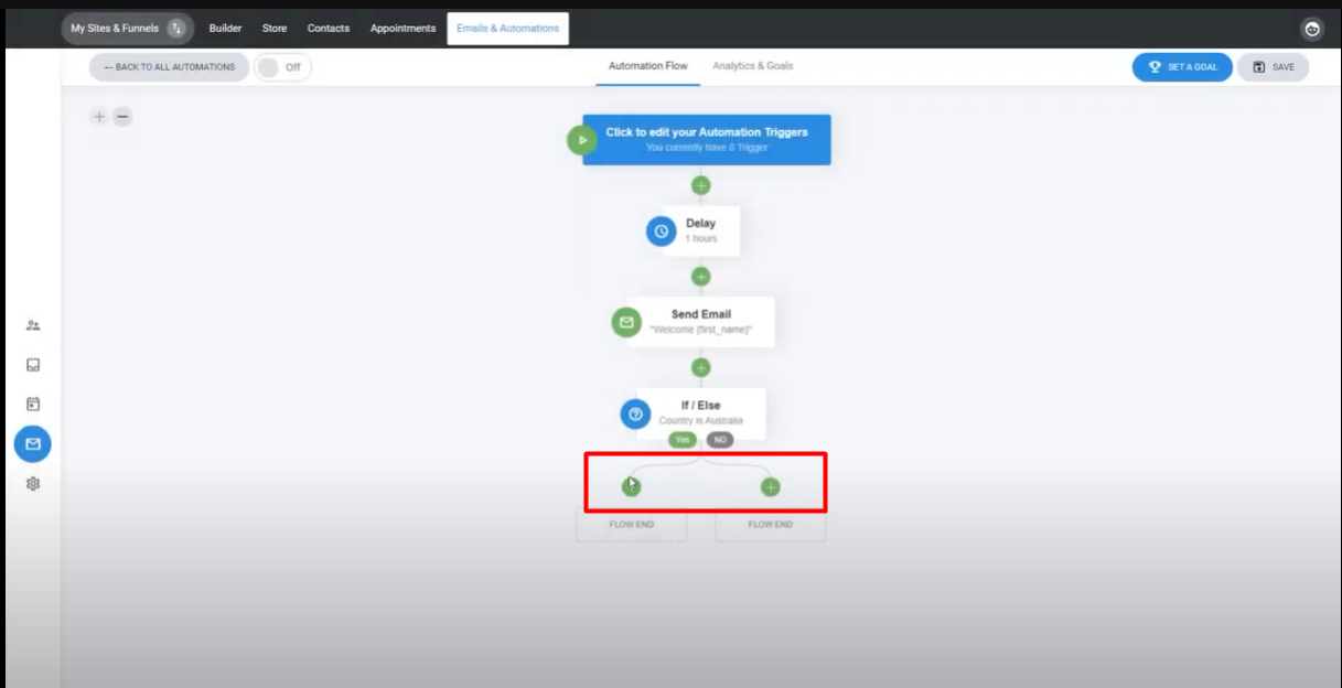 12. Utilize the "If Else" rule to split the flow based on certain properties. For example, you can create different paths for users from Australia and those from other countries.