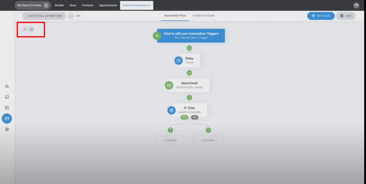15. To get a better overview of a large flow, click on the "-" sign to view a bigger picture or go back to the original view.