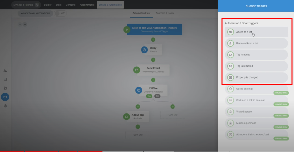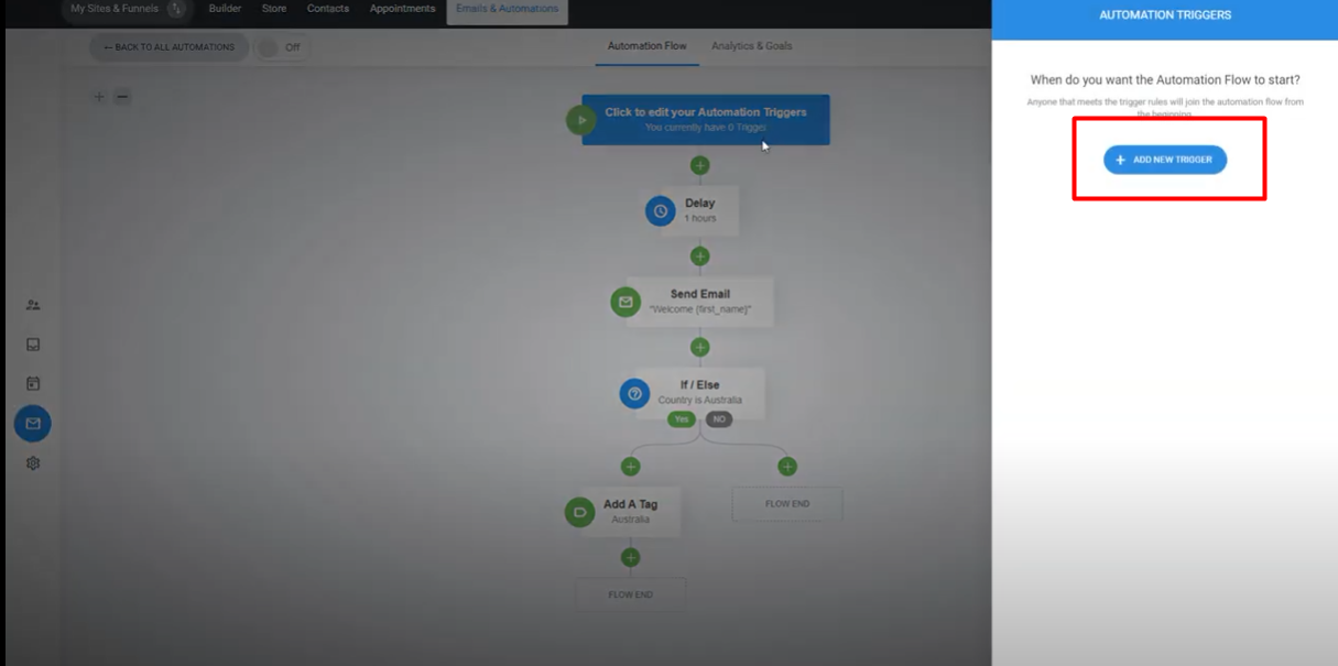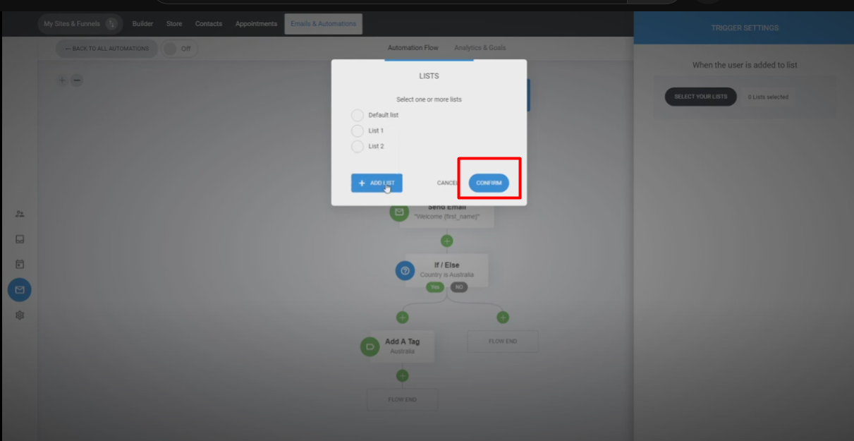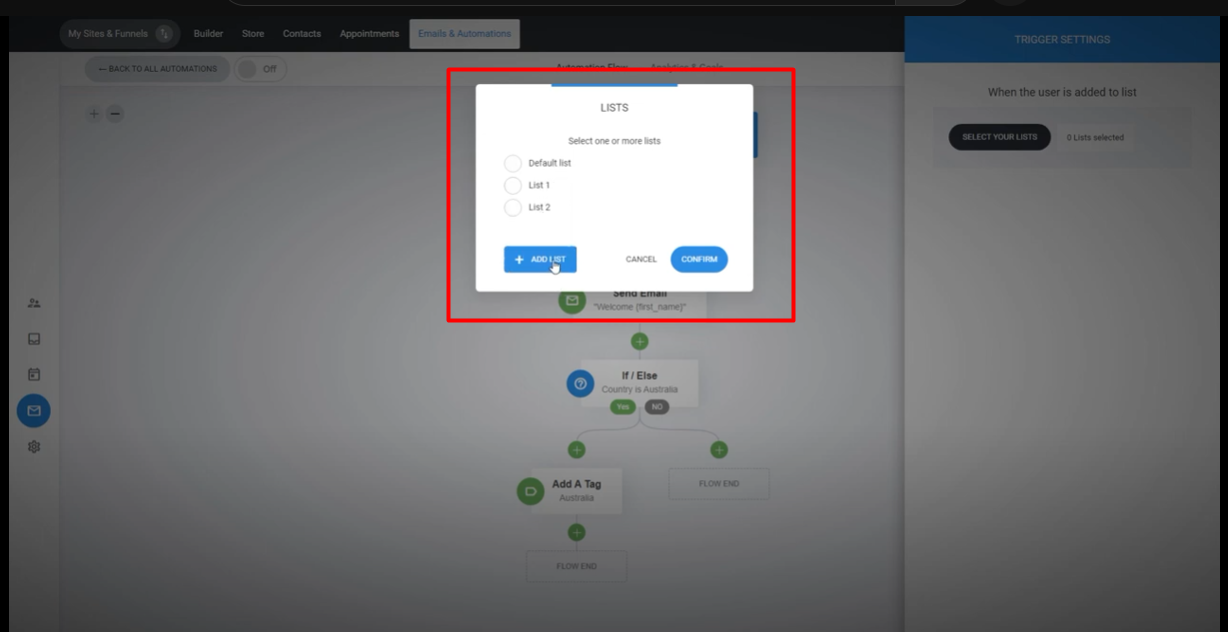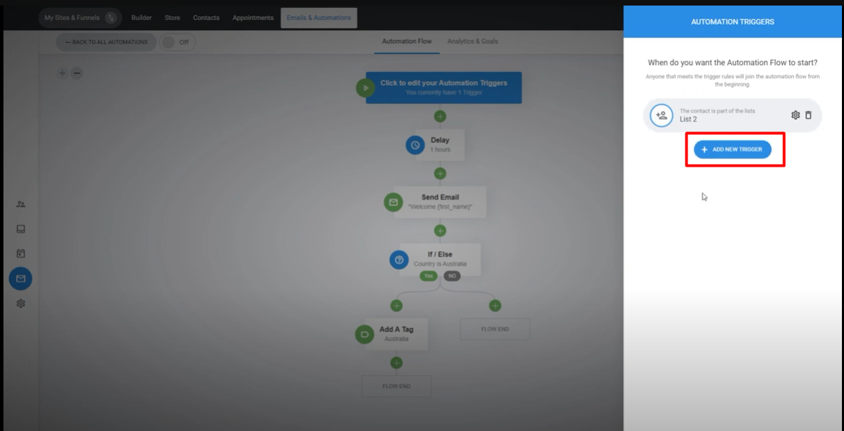 17. Click on "Add New Trigger" and select the desired trigger, such as when someone joins a specific list.