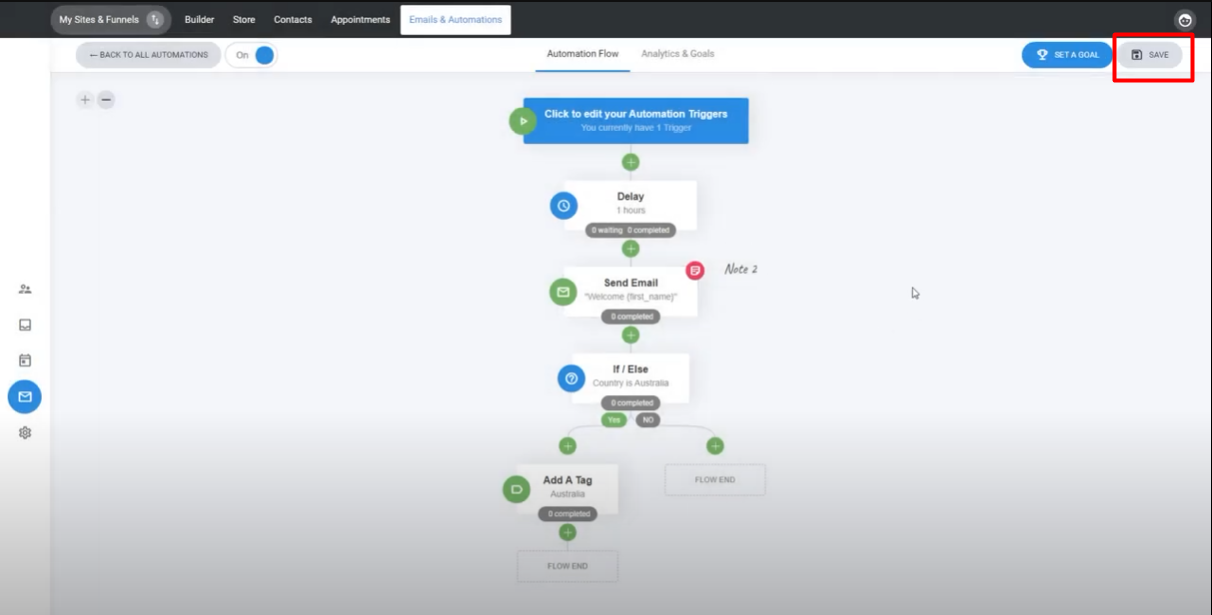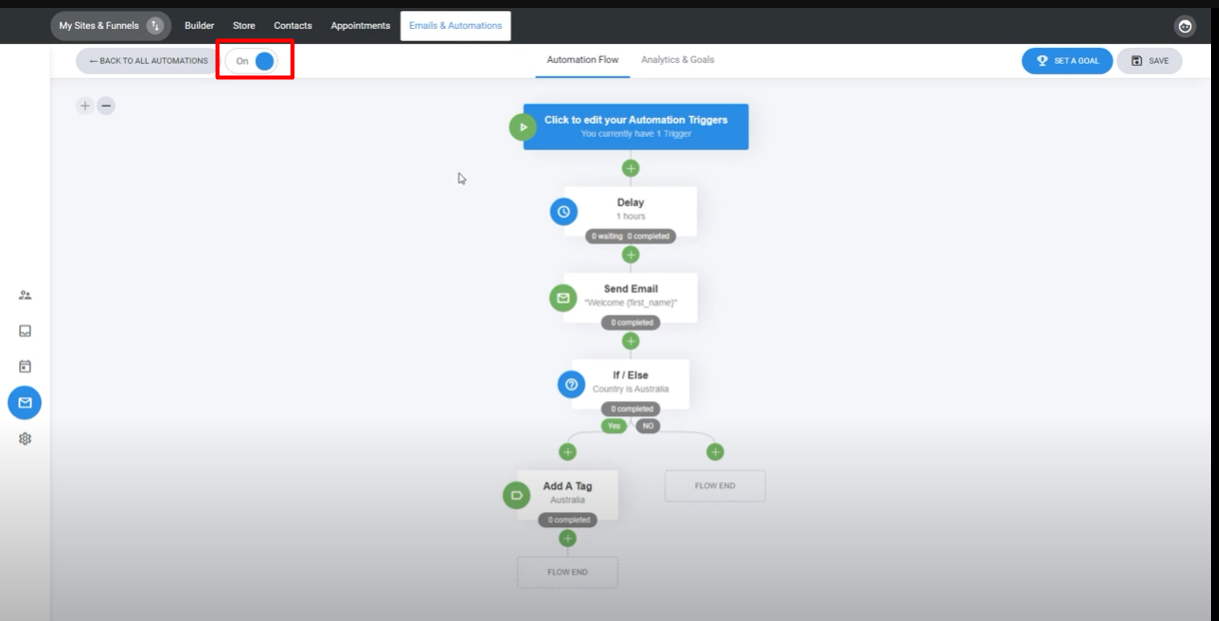 26. Turn on the automation to allow people to enter and start receiving the automation flow.