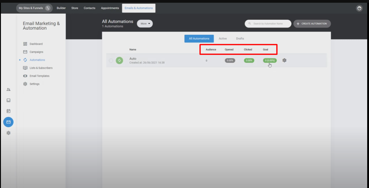 34. Monitor open rates, click rates, and goal achievements for each automation.