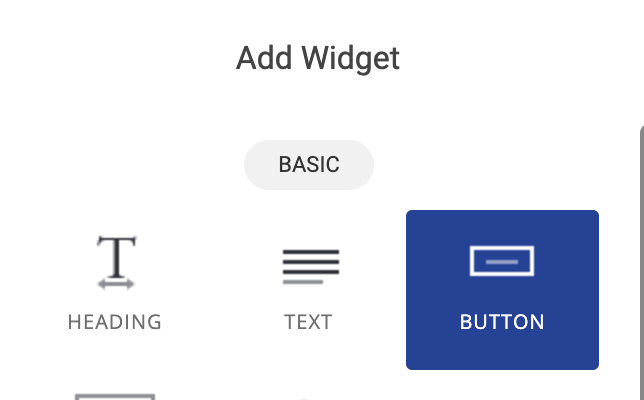 In the page builder you will see a menu on the left side of the screen. Hover your mouse over the menu and click on the "Add Widget" button.